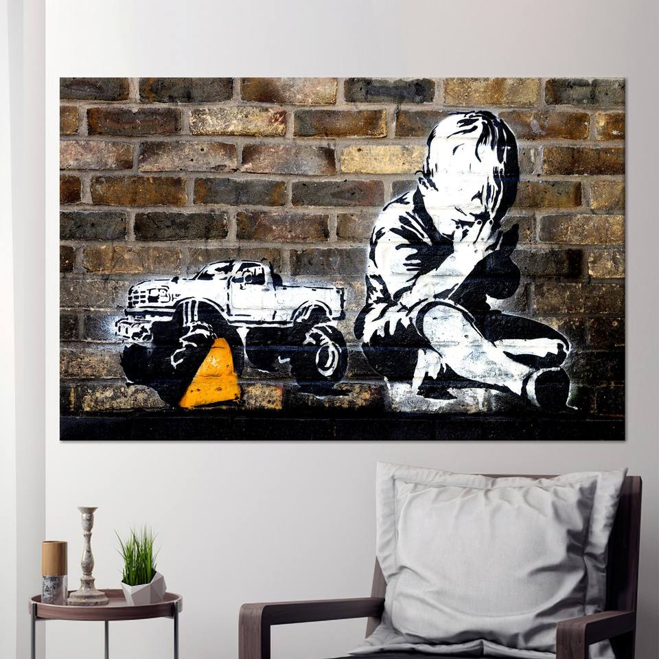 Banksy Praying Boy Graffiti Tempered Glass Wall Art Printed Canvas,WRAPPED CANVAS