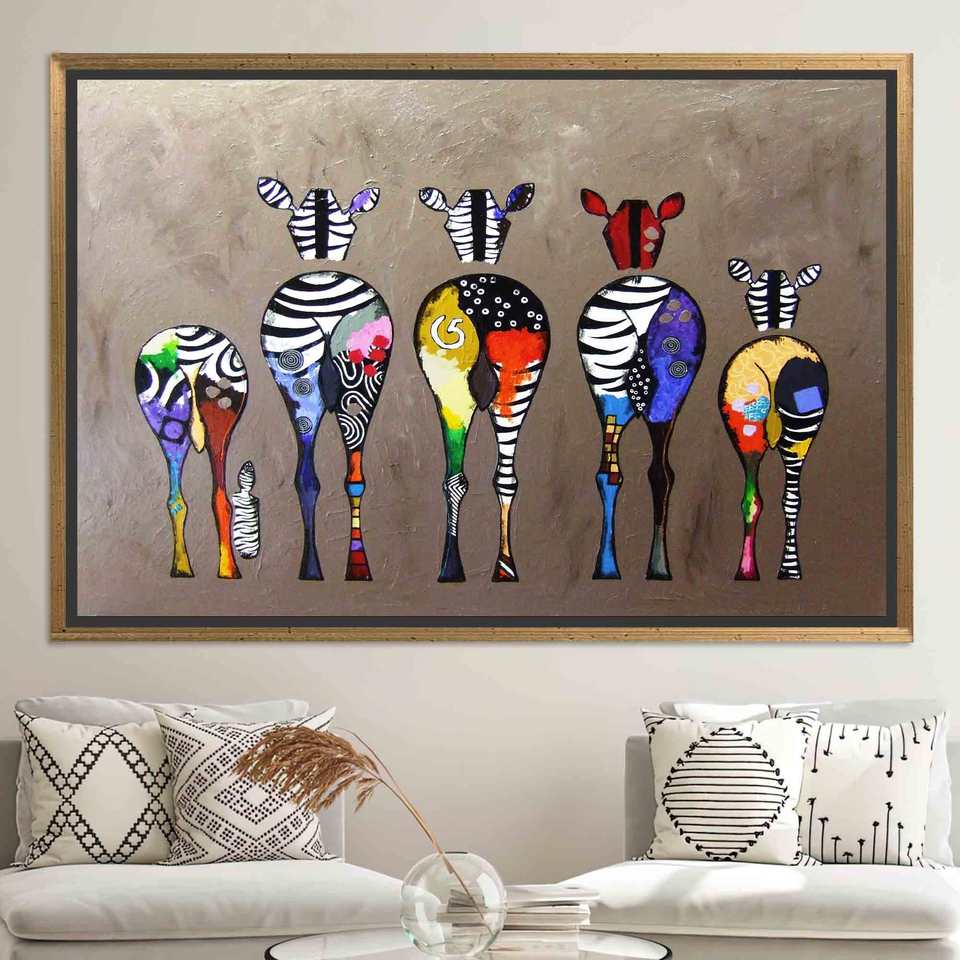ภาพพิมพ์บนผ้าใบลายม้าลายของแบงก์ซี่: งานศิลปะป๊อปอาร์ตแบบกราฟฟิตีสำหรับตกแต่งผนัง, ภาพพิมพ์บนผ้าใบกรอบสีทอง