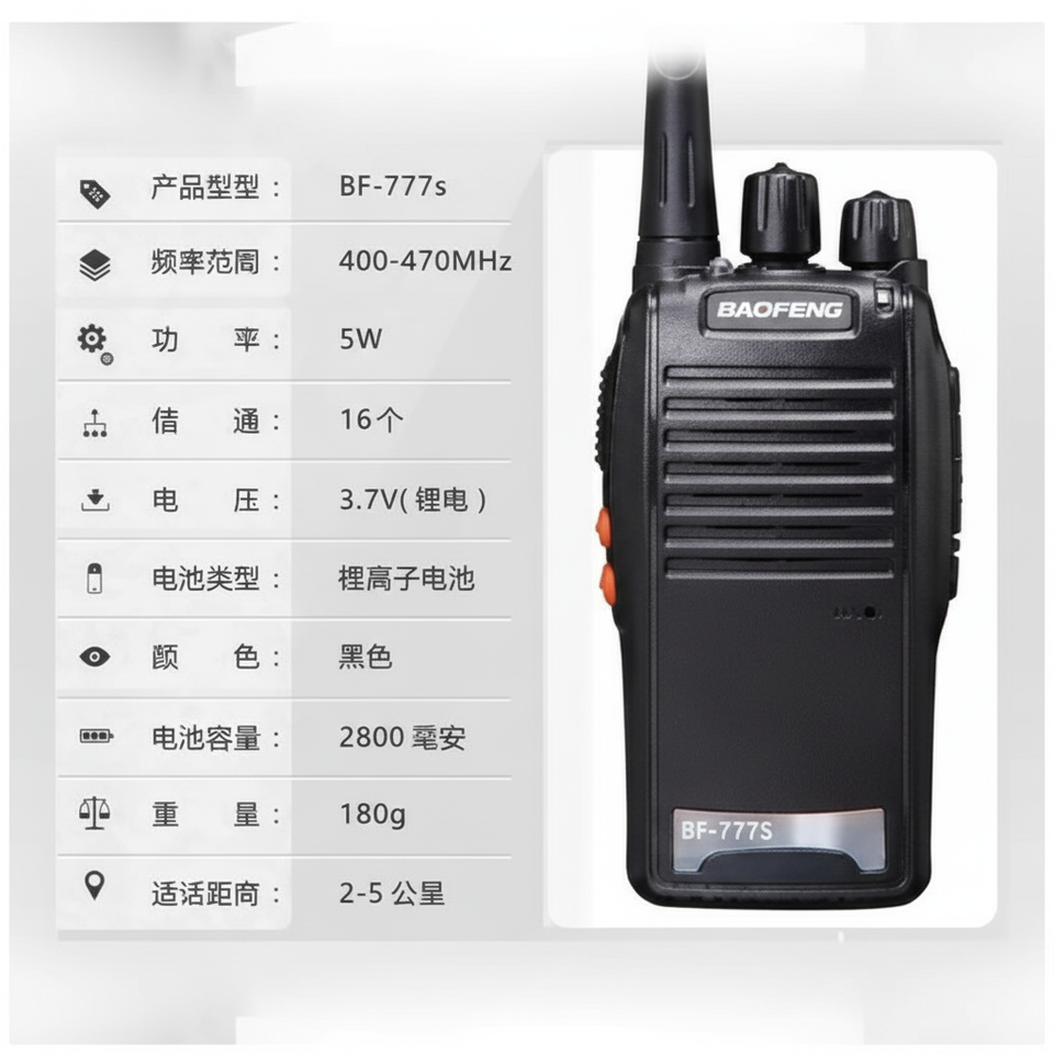 BAOFENG เครื่องรับส่งวิทยุ BF-777S 5W UHF ระบบอนาล็อก16ช่อง2800mAh อุปกรณ์สื่อสารกลางแจ้งแบตเตอรี่