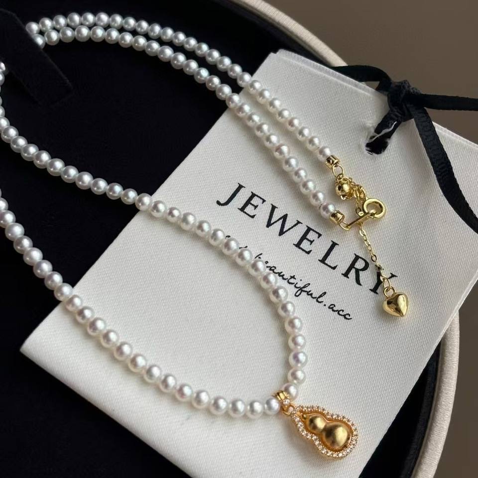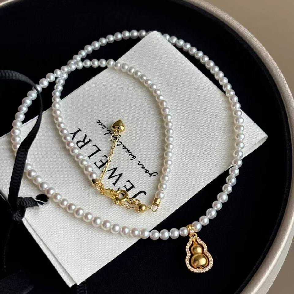 สร้อยคอผู้หญิงระดับไฮเอนด์ บาโอหู ดีไซน์เก๋ไก๋ ด้วยด้ายสีทอง ประดับจี้รูปน้ำเต้า หมุนได้ พร้อมไข่มุกใหม่ ดีไซน์หรูหรา