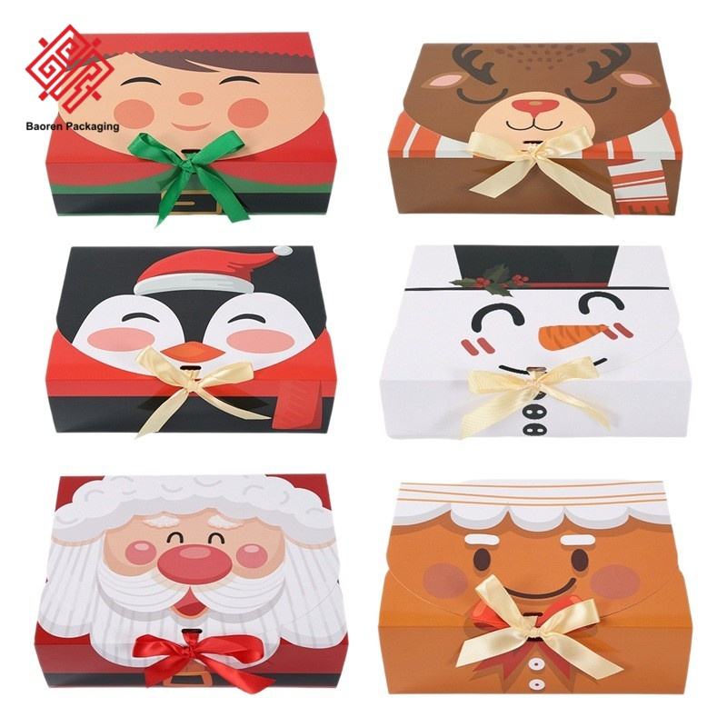 กล่องกระดาษบรรจุภัณฑ์เบเกอรี่เค้กคริสต์มาสแบบย่อยสลายได้ของ Baoren ขายส่ง พร้อมริบบิ้น กล่องของขวัญขนมไหว้พระจันทร์ กล่องของขวัญงานแสดงสินค้าแบบกำหนดเอง