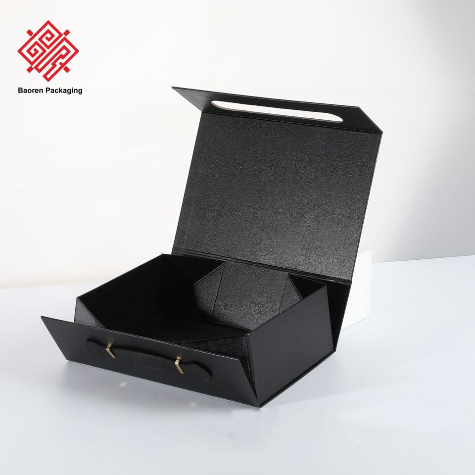 กล่องพับแม่เหล็กสีน้ำเงิน Baoren กล่องใส่หมวกวิกผมแบบเรียบง่ายสั่งทำได้ เป็นมิตรกับสิ่งแวดล้อม รีไซเคิลได้ กล่องสี่เหลี่ยมพร้อมหูหิ้วขนาดใหญ่
