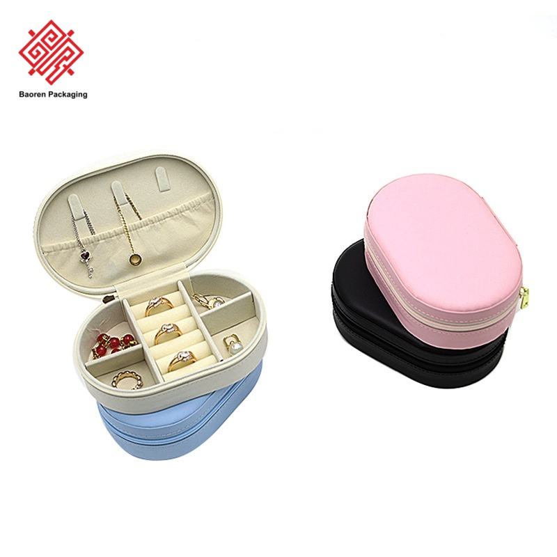 Baoren กล่องเก็บเครื่องประดับ PU ทรงรีแบบสั่งทำกล่องเครื่องประดับสร้อยคอต่างหูแบบเรียบง่ายชั้นเดียวพร้อมโลโก้ตามสั่ง