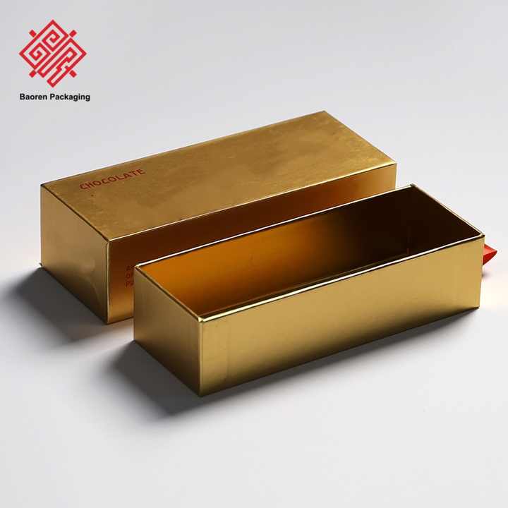 Baoren กล่องลิ้นชักสีทองสีดำล้วนแบบพรีเมียมพร้อมโลโก้ UV กล่องช็อคโกแลตเปล่าบรรจุภัณฑ์ด้านนอกสำหรับขนมคุกกี้