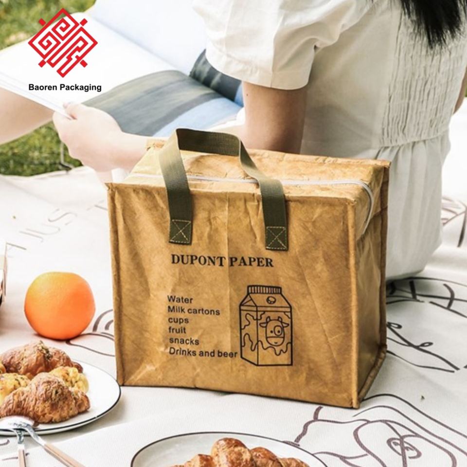 กระเป๋าใส่อาหารกลางวันแบบหุ้มฉนวนฉุกเฉิน ยี่ห้อ Baoren DuPont Paper เป็นมิตรกับสิ่งแวดล้อม แบบกำหนดเองได้ สำหรับพนักงานออฟฟิศ ผู้หญิง ผู้ชาย ความจุขนาดใหญ่ ใช้สำหรับปิกนิก
