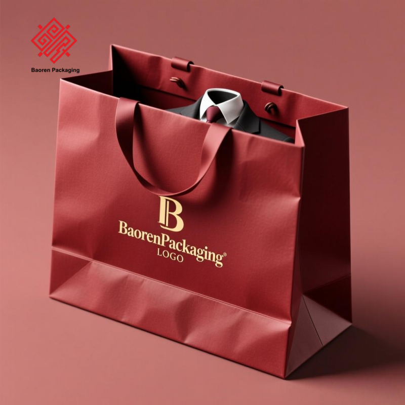Baoren ถุงกระดาษใส่เสื้อผ้าสำหรับธุรกิจขนาดเล็กสีเขียวเข้มถุงกระดาษช้อปปิ้งสุดหรูพร้อมที่จับเชือกฝ้าย