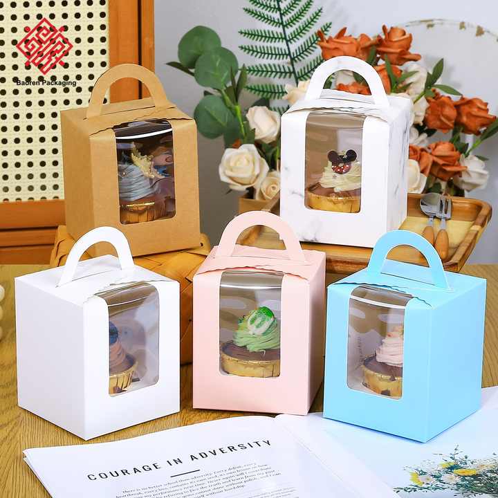 กล่องกระดาษใส่ขนมเกรดอาหาร แบรนด์ Baoren สำหรับขนมอบสไตล์ตะวันตก บรรจุ 1/2/4/6 ชิ้น กล่องกระดาษพร้อมหูหิ้วแบบกำหนดเองได้