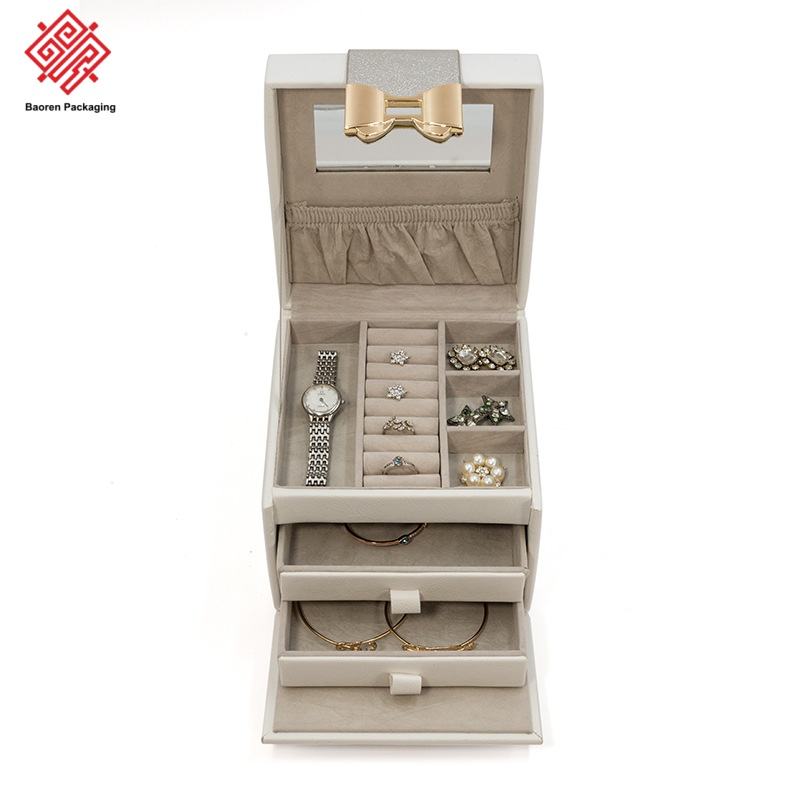 Baoren Ivory Necklace Larger Jewelry Convenient Storage Box With Bow Tie Ring Watch Three-layers Jewellery Organiser Box Big