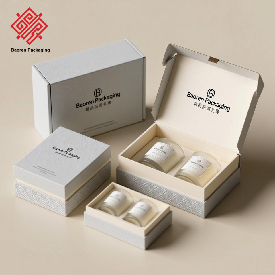 กล่องของขวัญแม่เหล็กแบบพลิกเปิดได้ แบรนด์ Baoren สำหรับบรรจุภัณฑ์น้ำหอมและของที่ระลึก กล่องเทียนแบบกำหนดเอง กระดาษพิเศษ ปรับแต่งได้