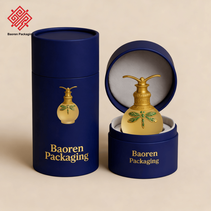 Baoren กล่องทรงแบนมีห่วงกลมกลมสีฟ้าเข้มบรรจุภัณฑ์สบู่บาล์มน้ำมันใส่ผมเทียนกระดาษระงับกลิ่นกายย่อยสลายได้