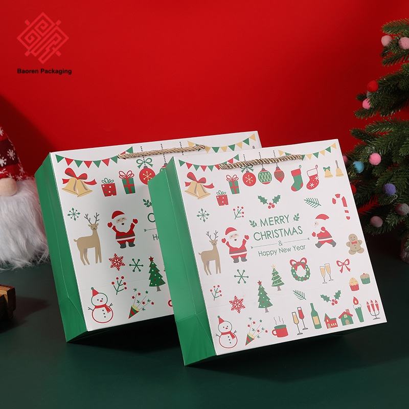 Baoren ใหม่ของขวัญคริสต์มาสถุงกระดาษของขวัญสีแดงสีเขียวสำหรับของขวัญเทศกาลผ้าพันคอขนาดใหญ่กระเป๋ามือถือที่มีการพิมพ์ที่กำหนดเอง