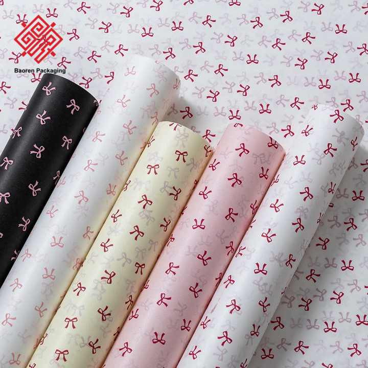 กระดาษห่อลายดอกไม้กระดาษลูกแพร์หิมะแบบหนาของ Baoren ดีไซน์พรีเมียมอุปกรณ์สำหรับร้านดอกไม้ขายส่งฐานซับในกระดาษ DIY โลโก้