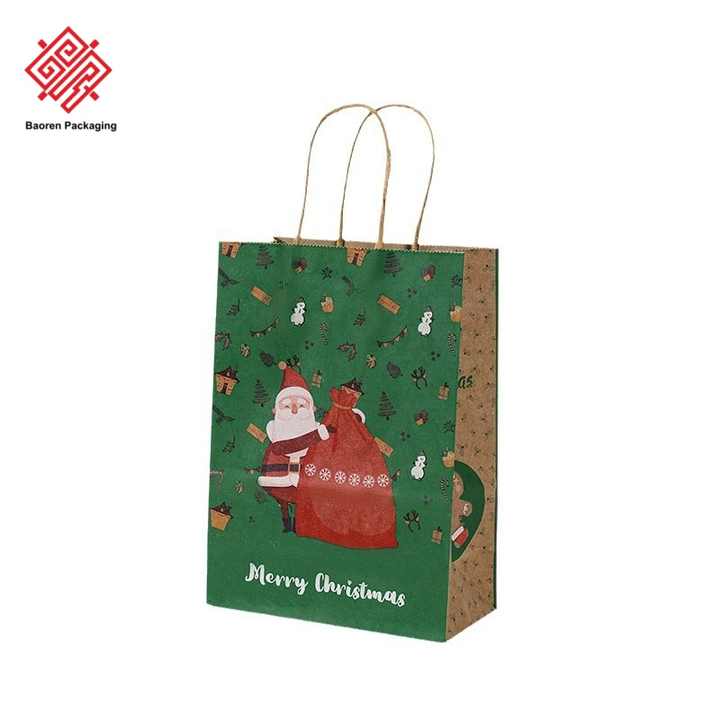 ถุงคริสต์มาสขายส่ง Baoren ถุงกระดาษคราฟท์สีน้ำตาล ลายการ์ตูน ถุงของขวัญ ถุงซื้อของลายซานตาคลอส ถุงก้นแบน มีสินค้าในสต็อก