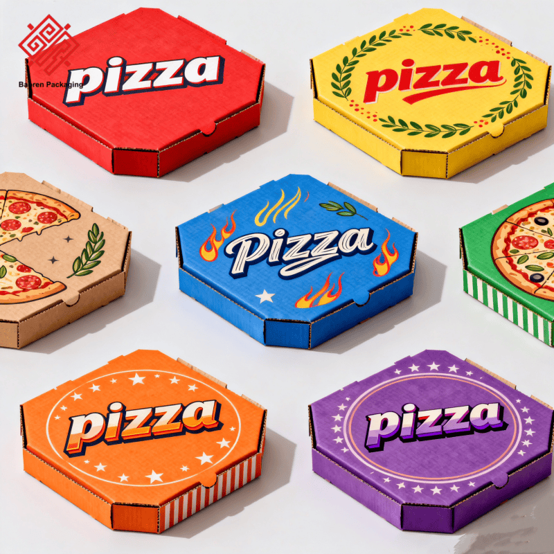 กล่องพิซซ่ากระดาษคราฟท์พิมพ์โลโก้ตามสั่งขายส่งจาก Baoren ขนาด 12 นิ้ว และ 10 นิ้ว บรรจุภัณฑ์รักษ์โลกสำหรับขนมหวาน ซูชิ และพิซซ่า