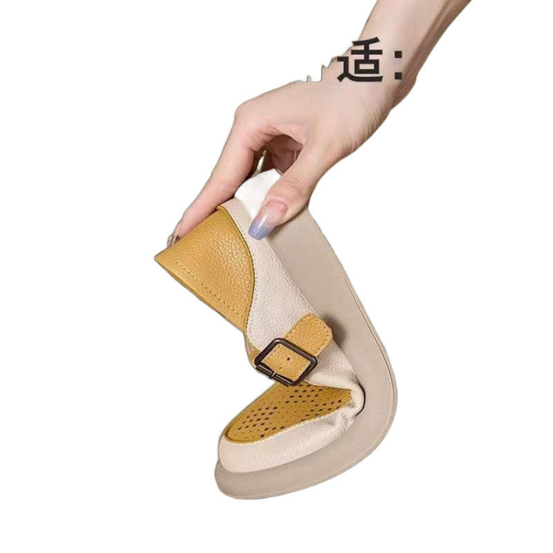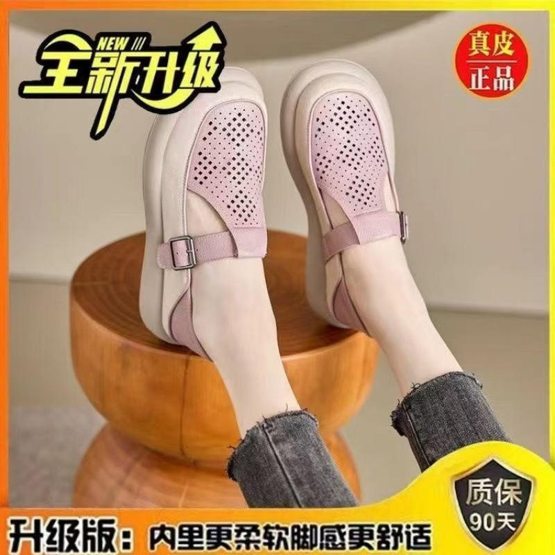 รองเท้าแตะแบบโรมันสำหรับผู้หญิง Baotou 2025 หนังแท้พร้อมพื้นรองเท้าทำจากป่าน พื้นนุ่มแบบมีรู รองเท้าลำลองสำหรับฤดูร้อน ลายหัวกะโหลกที่หัวรองเท้า