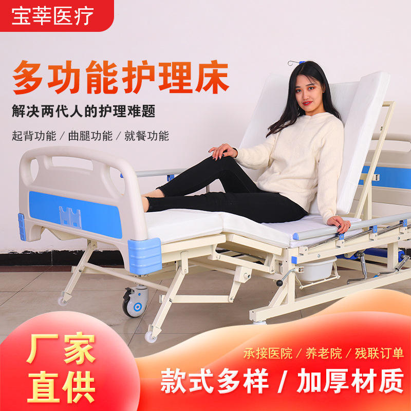 เตียงพยาบาลปรับระดับได้ Baoxin สำหรับผู้สูงอายุและผู้ป่วยพิการ ใช้สำหรับดูแลที่บ้านและโรงพยาบาล พร้อมราวกั้นข้างและล้อเลื่อน
