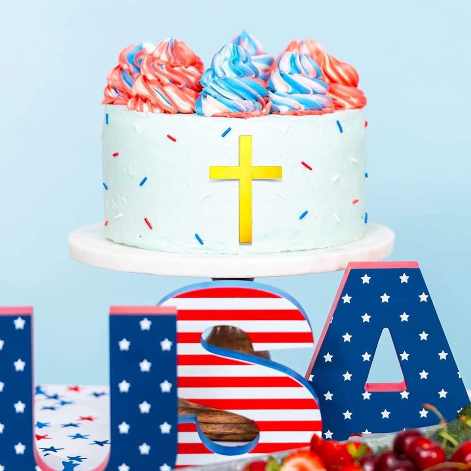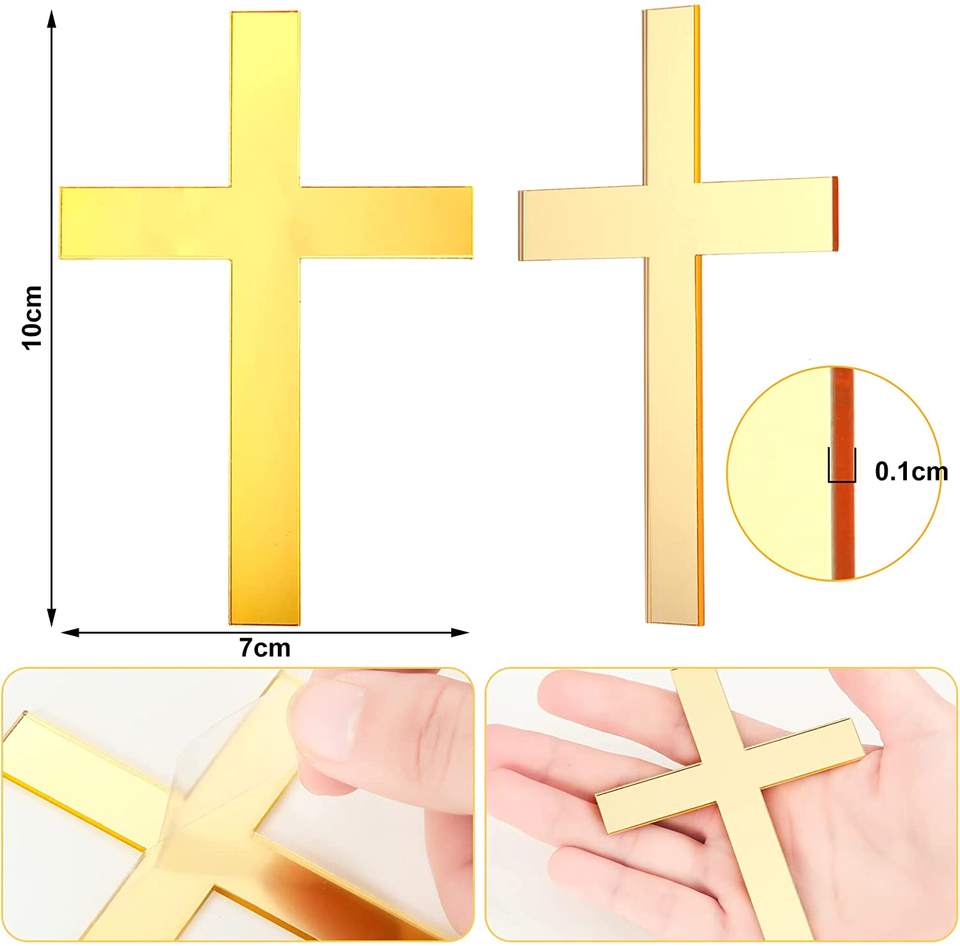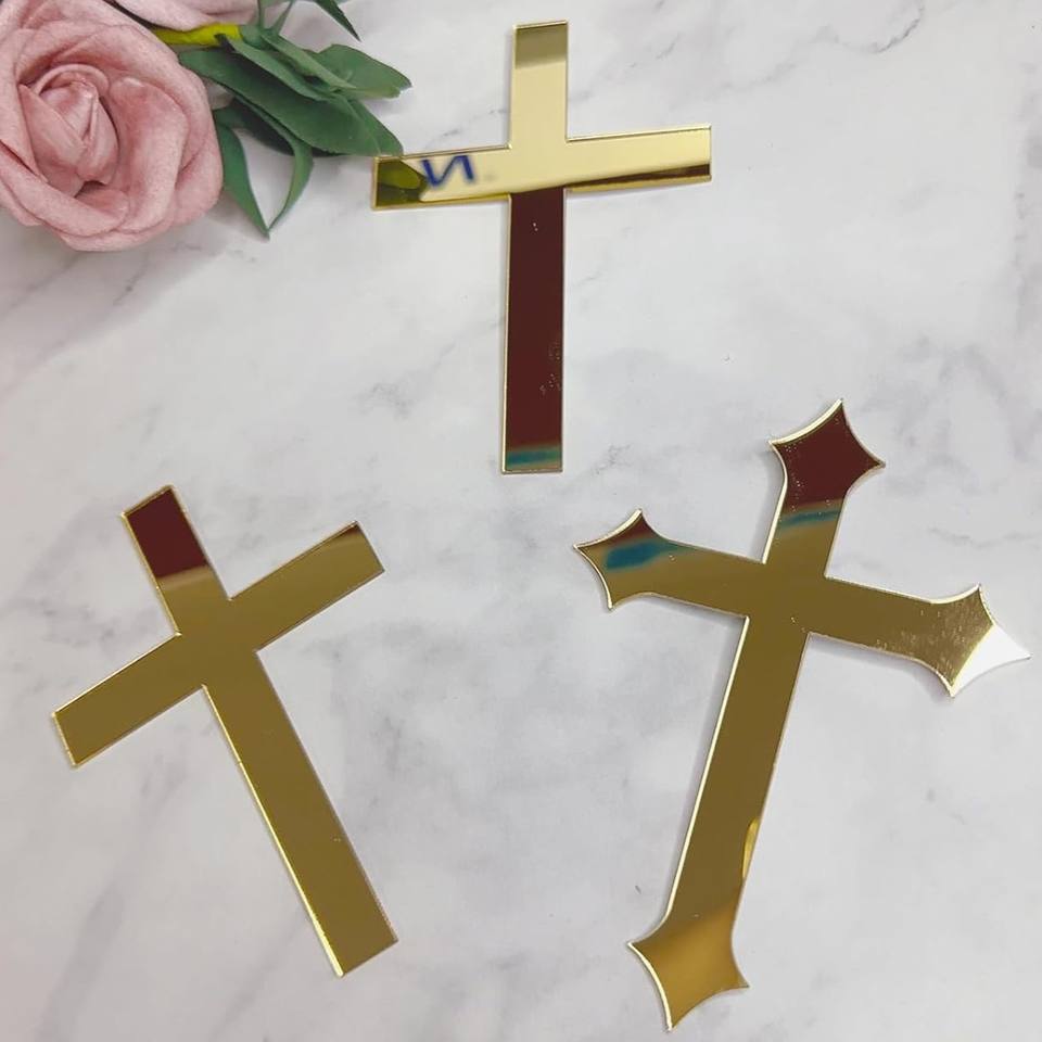 คลาสสิกการล้างบาปคริสเตียนกระจกสีทองคริลิคข้ามเค้กด้านบน
