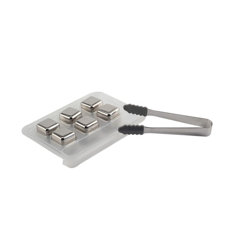 อุปกรณ์บาร์ สลักโลโก้ได้ตามต้องการ ลูกบาศก์น้ำแข็งโลหะสำหรับเครื่องดื่มไวน์ หินวิสกี้สแตนเลส