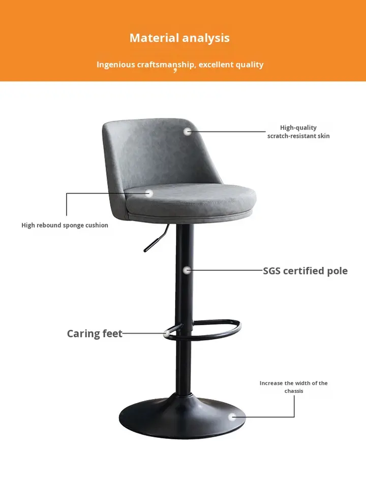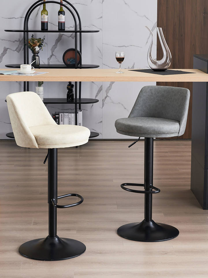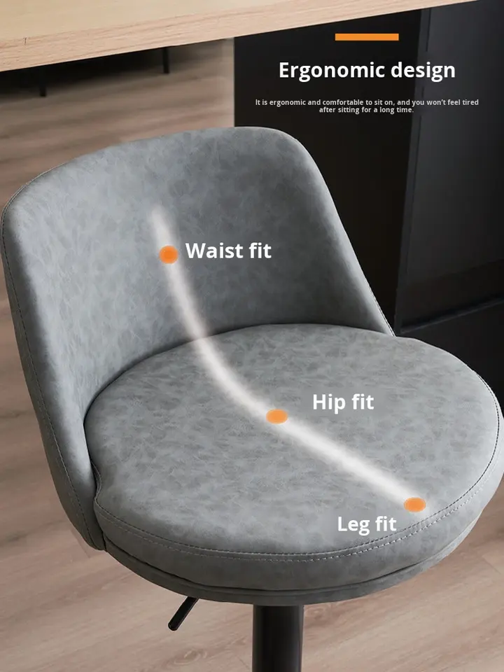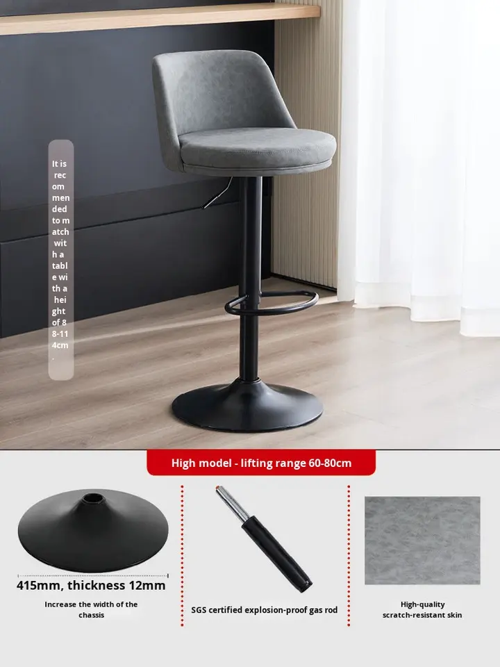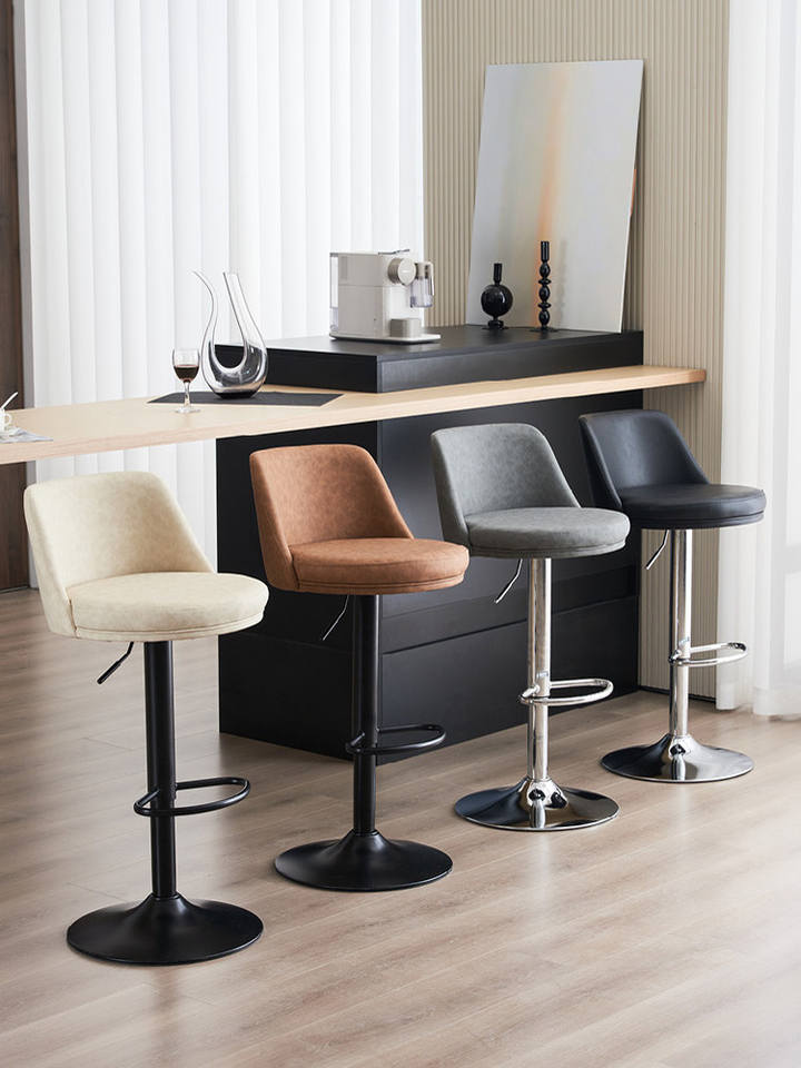 เก้าอี้บาร์ปรับความสูงได้ หมุนได้ มีพนักพิง สไตล์โมเดิร์น มินิมอล หรูหราเบาๆ สำหรับบ้าน แฟชั่น ฐานเหล็กทรงกลม