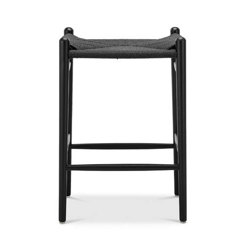 เก้าอี้บาร์โครงไม้สักแท้ พร้อมเชือกถักและเคลือบสีดำ สำหรับใช้ภายในและภายนอกอาคาร