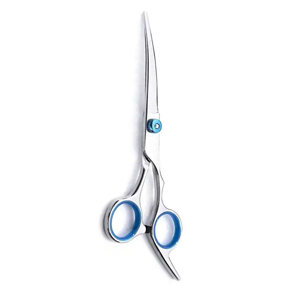 กรรไกรตัดผมทรงใบมีดโค้งกระจกสำหรับช่างตัดผมพร้อมสกรูปรับได้และที่วางนิ้ว