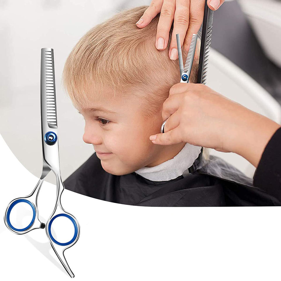 กรรไกรซอยบางสำหรับช่างตัดผมกรรไกรตัดเหล็กเหล็กคมสำหรับร้านเสริมสวยพร้อมแหวนยาง