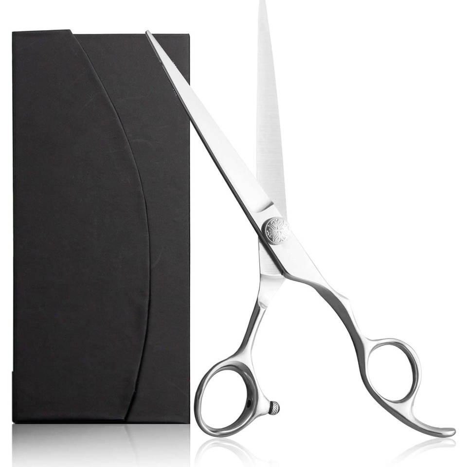 กรรไกรตัดผมด้วยมือขวาแบบมืออาชีพพร้อมด้ามจับขนาดกลางทำจากสแตนเลสสำหรับร้านความงามการตัดผม