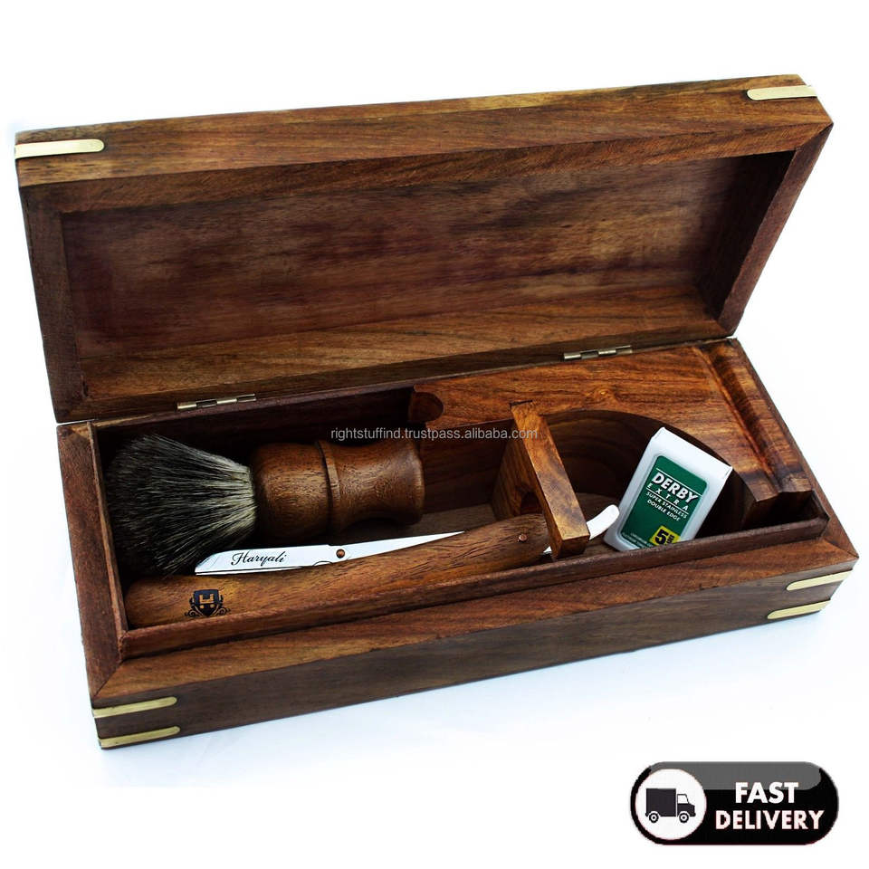 Barber Salon New Men Luxury Shaving Kit Double Edge Safety Razor Hair Shaving Brush Grooming Stand Bowl Cup Set