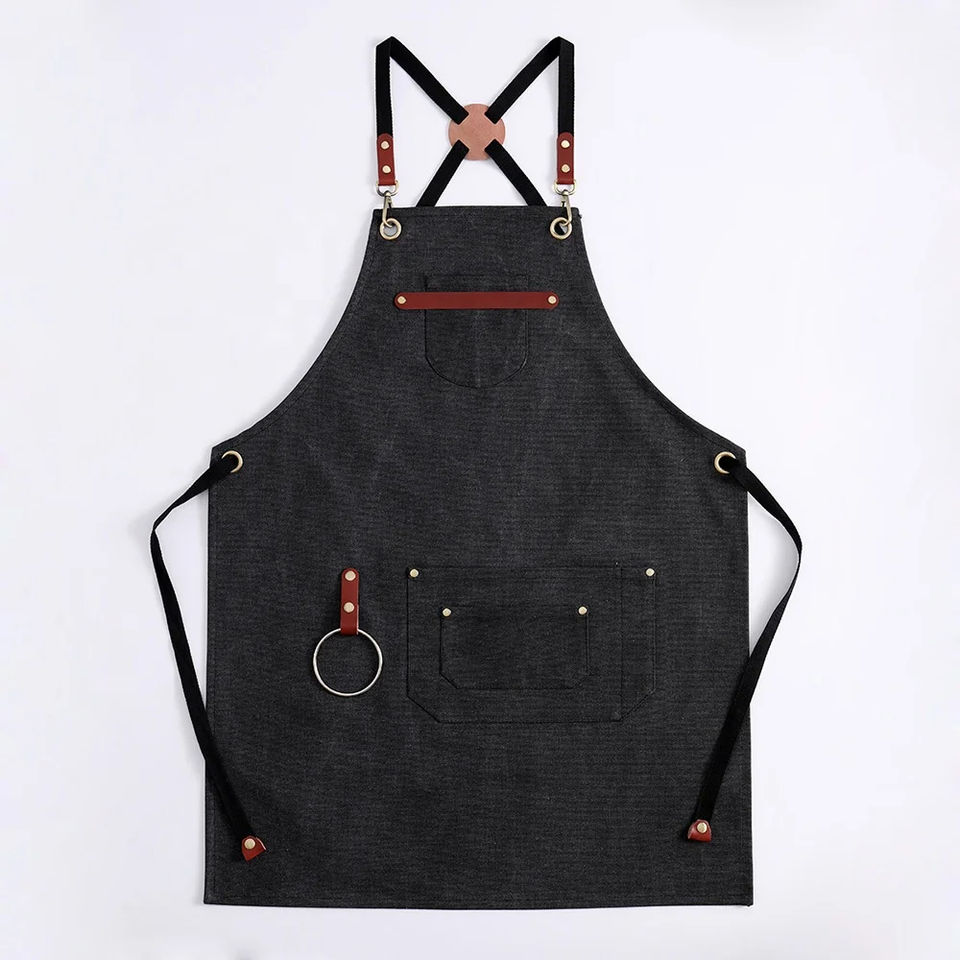 ผ้ากันเปื้อนกันน้ำแห้งเร็วเครื่องแบบพ่อครัวบาริสต้าและชุดเชฟผ้าแคนวาสแขนกุดนำกลับมาใช้ใหม่ได้ทนทาน