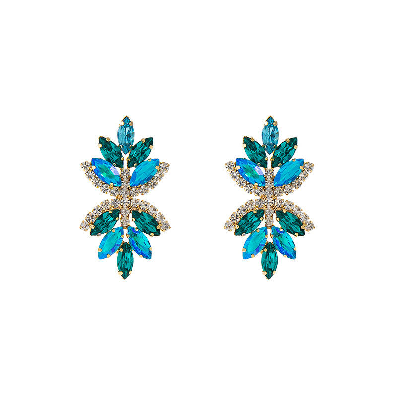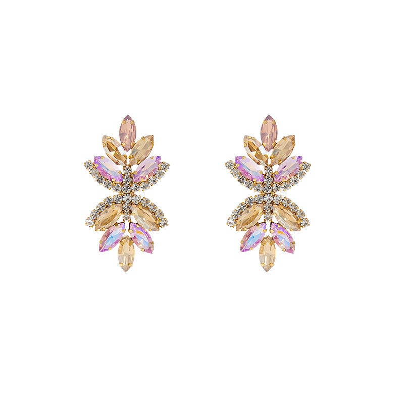 ต่างหูห้อยรูปดอกไม้ประดับเพชรเจียระไนทรงเจ้าหญิงหลากสีสันจาก Barly Fashion 4 สี ทำจากโลหะผสมและแก้ว เหมาะสำหรับผู้หญิงในโอกาสครบรอบ