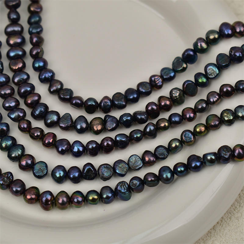 ไข่มุกน้ำจืดสีดำเงาสองด้าน ขนาด 5-6 มม. แบบกึ่งสำเร็จรูป สำหรับทำสร้อยคอ DIY แหล่งสินค้าสำหรับการค้าต่างประเทศ