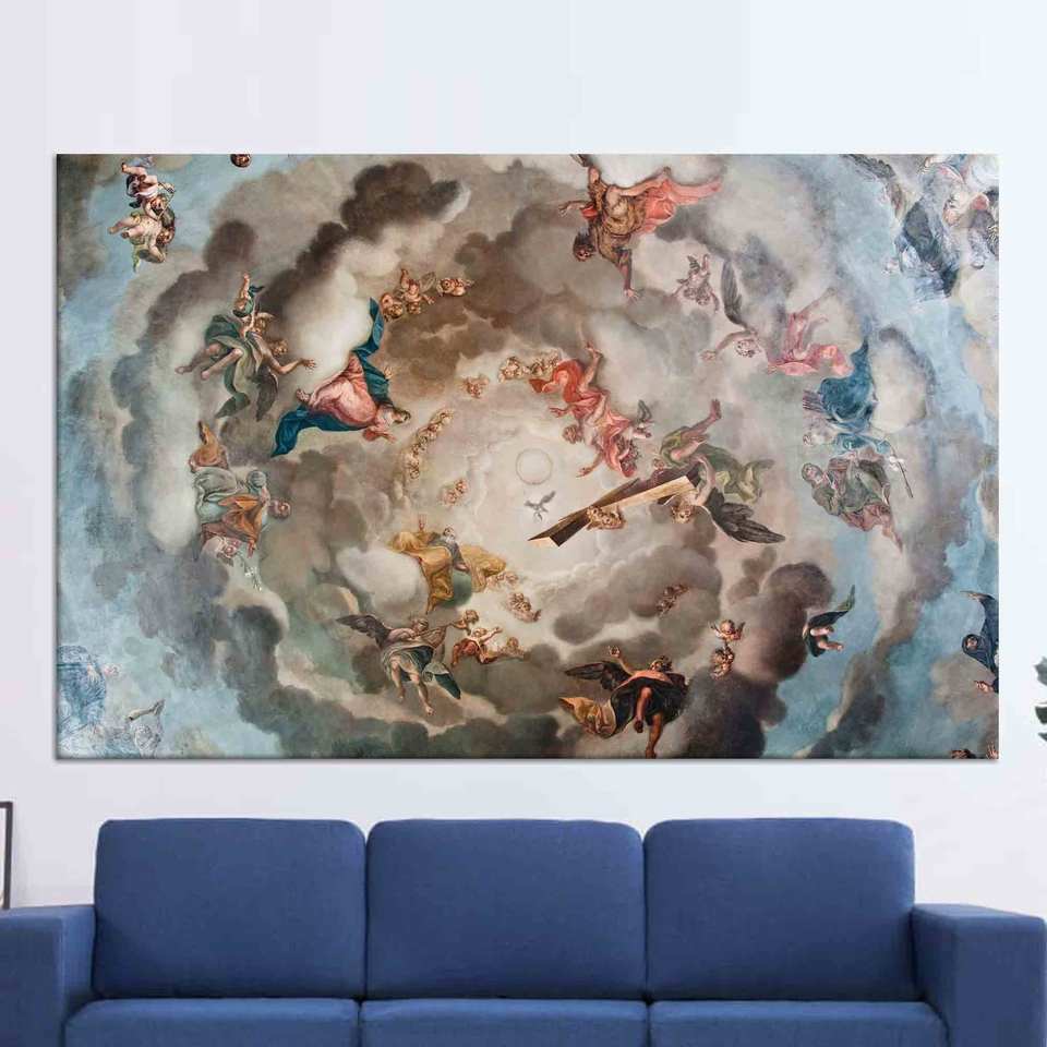 ภาพพิมพ์บนผ้าใบลายเทวดาบาโรก: ศิลปะติดผนังแบบเฟรสโกคลาสสิกสำหรับเพดาน, ผ้าใบหุ้ม