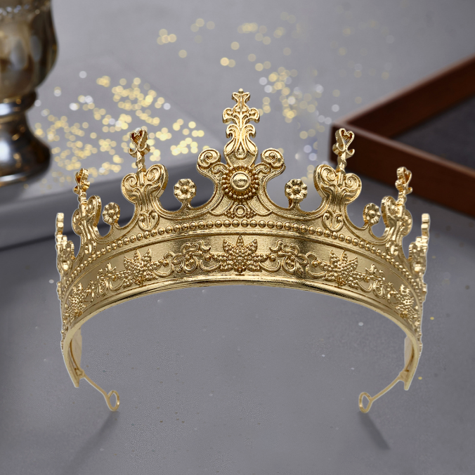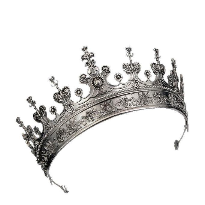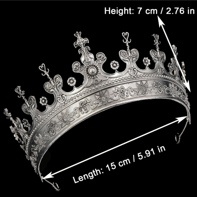 มงกุฎทองเหลืองโบราณสไตล์บาร็อคของผู้ชายมงกุฎทองแดงโบราณสีเงินโบราณมงกุฎโลหะกษัตริย์