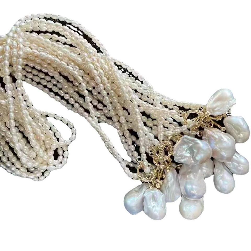 สร้อยคอมุกน้ำจืดทรงเมล็ดข้าวฟ่าง ขนาดใหญ่ 25 มม. สไตล์บาโรก ยุโรป อเมริกัน แฟชั่น