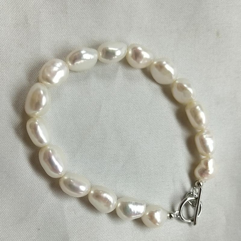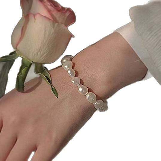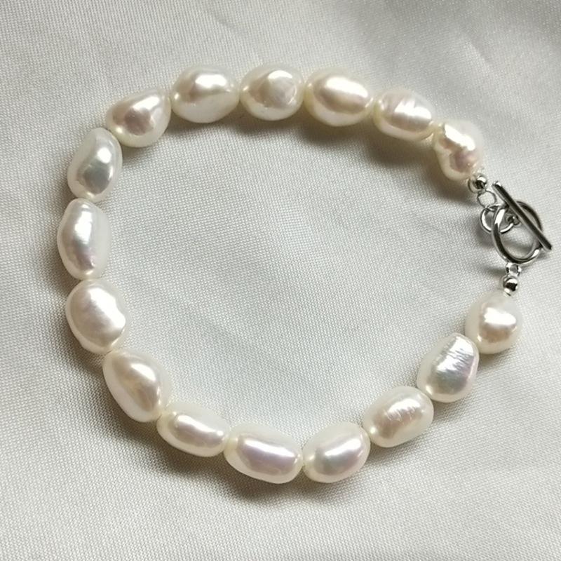 สร้อยข้อมือไข่มุกน้ำจืดทรงบาโรก 8-9 มม. สีขาว แสงสว่าง ไร้สารกัมมันต์ รูปทรงไม่สม่ำเสมอ เรียบง่าย สไตล์ OT แฟชั่น