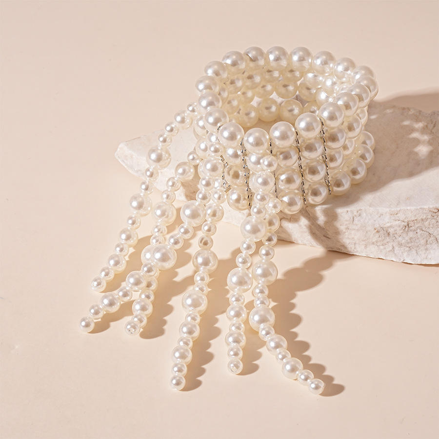 สร้อยข้อมือไข่มุกเทียมสไตล์บาร็อคสี่ชั้นมีพู่ห้อยสร้อยคอหรูหราสำหรับผู้หญิงเครื่องประดับข้อมือสไตล์วินเทจสำหรับงานเลี้ยงงานแต่งงาน