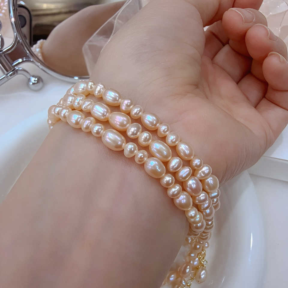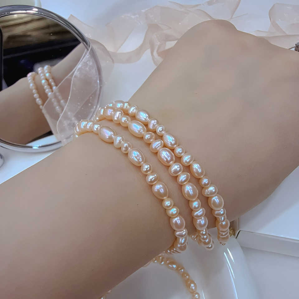 SL4-18 สร้อยข้อมือมุกสีชมพูธรรมชาติ 4-5มมสี