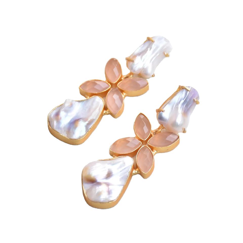 Stone:Baroque Pearl with Rose Quartz