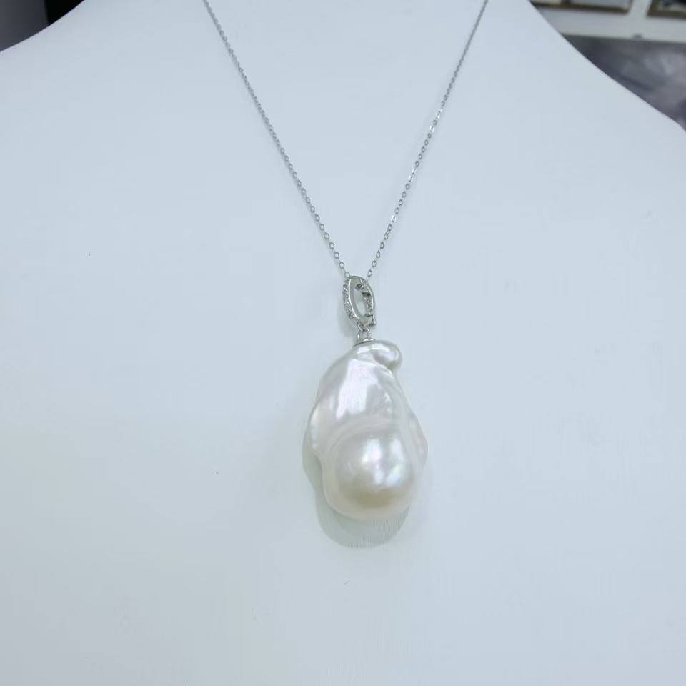 จี้สร้อยคอมุกสไตล์บาโรกสำหรับผู้หญิง 13-19 มม. เงินแท้ ดีไซน์หยดน้ำอันละเอียดอ่อน