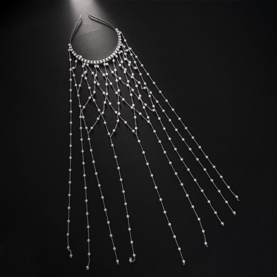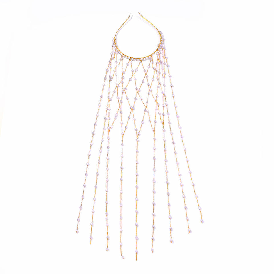ที่คาดผมประดับมุกบาโรกแบบพู่ห้อย ชุบทองบนทองแดง ดีไซน์หรูหราสไตล์เจ้าหญิงฝรั่งเศส สำหรับเจ้าสาวในงานแต่งงาน