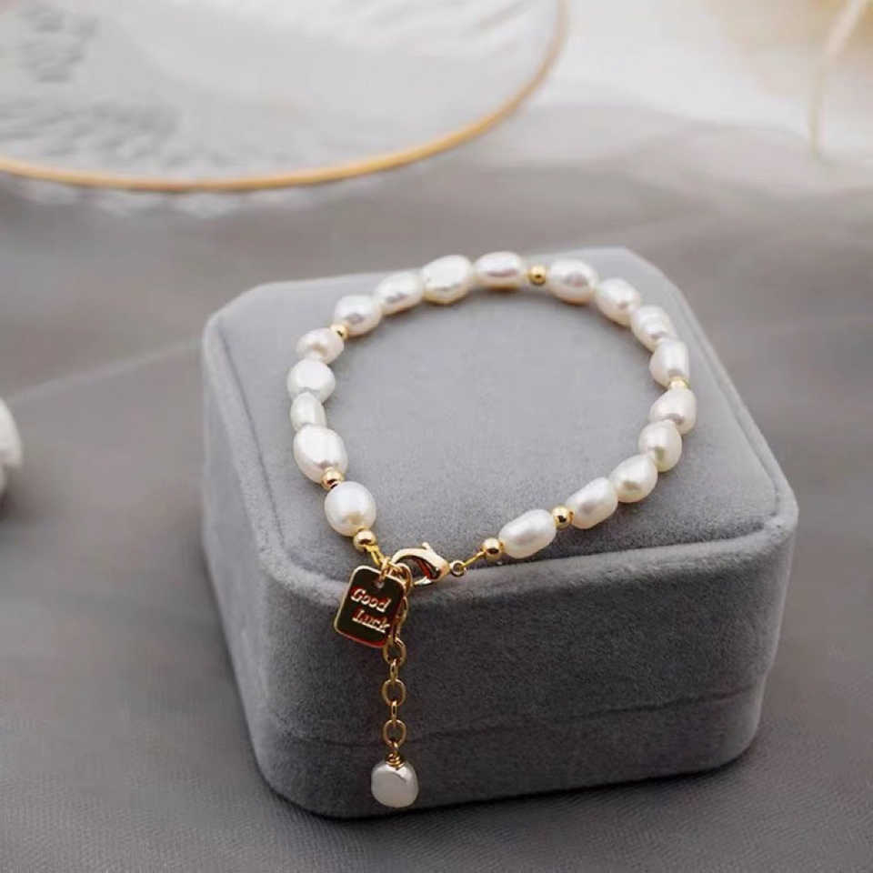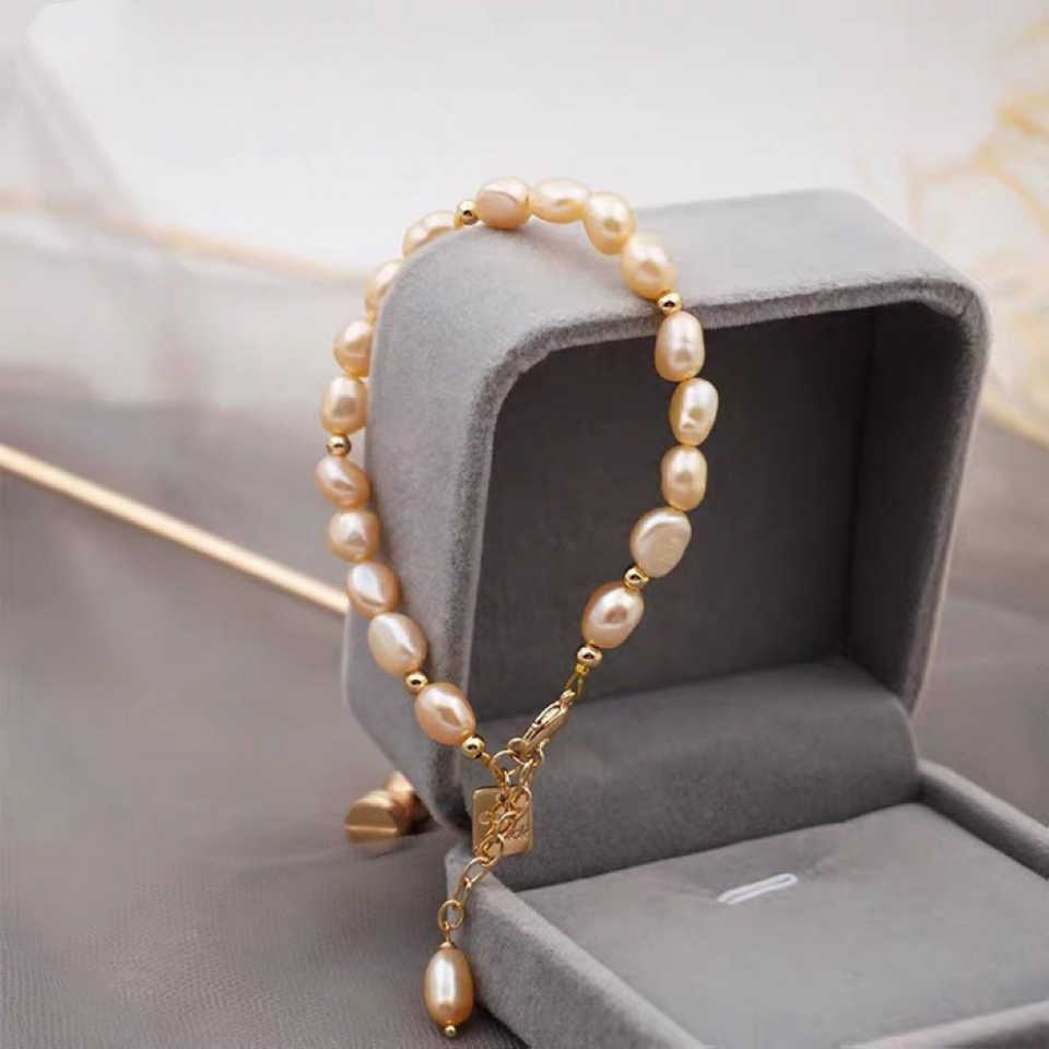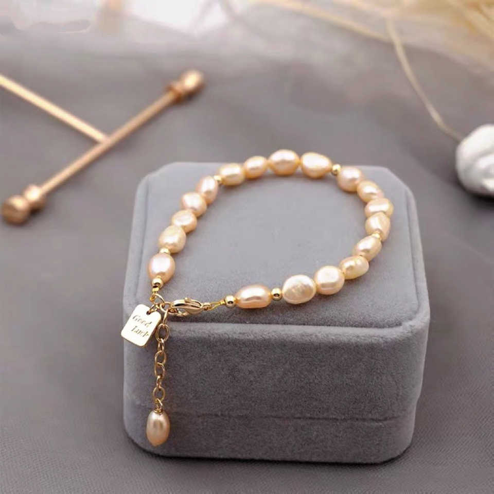 กำไลข้อมือสไตล์วินเทจสีชมพูและสีขาวแบบบาโรกประดับมุกน้ำจืด