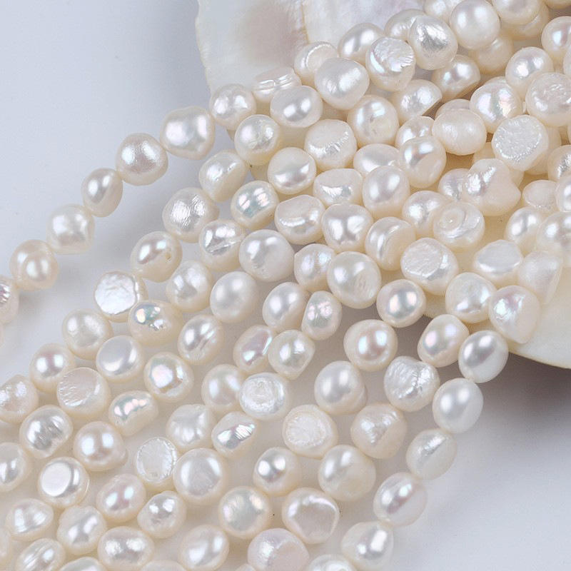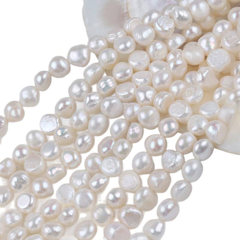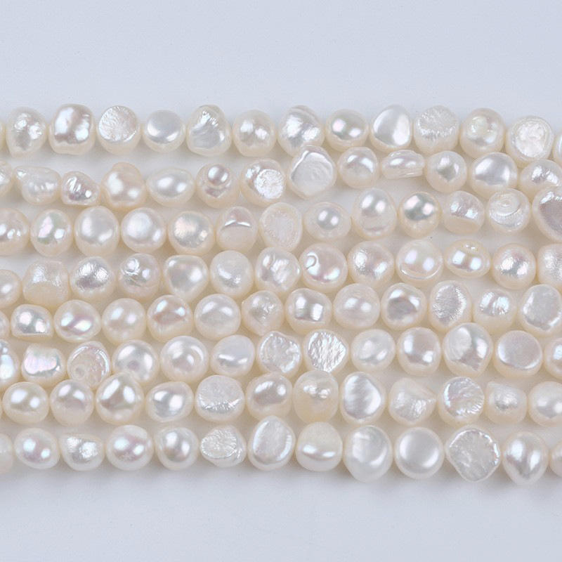 ไข่มุกน้ำจืดธรรมชาติทรงบาร็อค ขนาด 8-9 มม. รูเจาะแนวนอนสองด้าน สำหรับงาน DIY ทำมือ