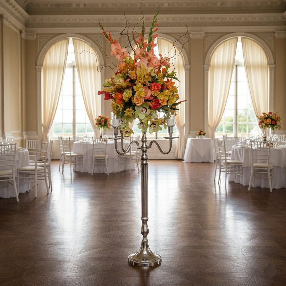 เชิงเทียนเงินสไตล์บาโรกพร้อมแจกันดอกไม้ งานแฮนด์เมด ตกแต่งบ้านสไตล์โมเดิร์น เชิงเทียนโบราณพร้อมแจกันสำหรับขาย