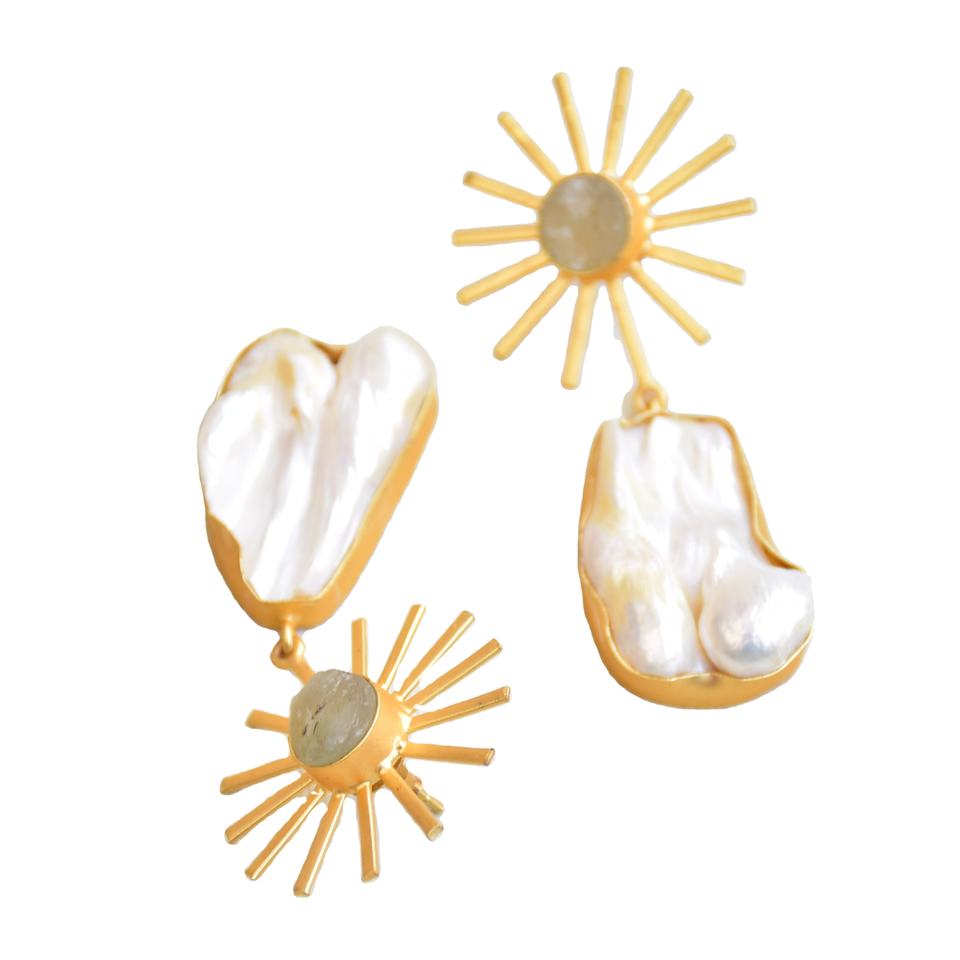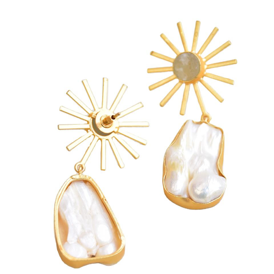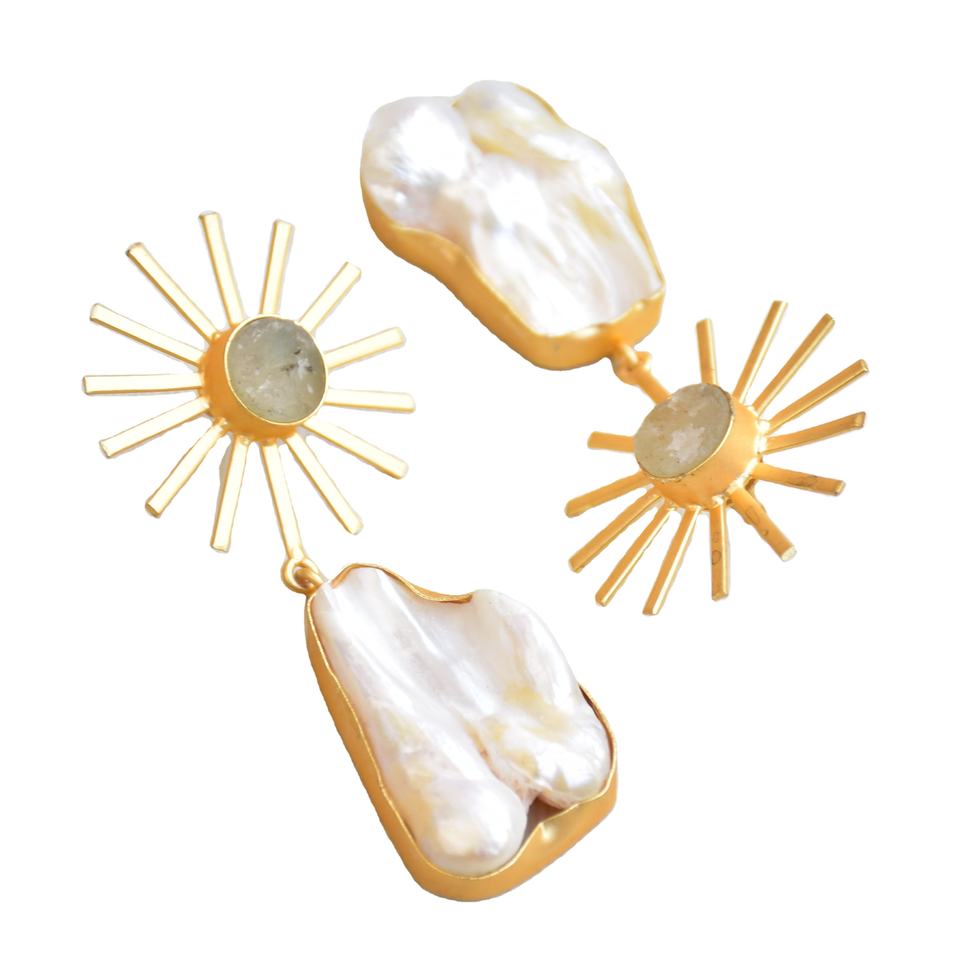 ต่างหูแฟชั่นทองเหลืองส่งออกตุ้มหูเพรไนท์ไข่มุกน้ำจืดบำบัดแท้ต่างหูรูปทรงเรขาคณิต
