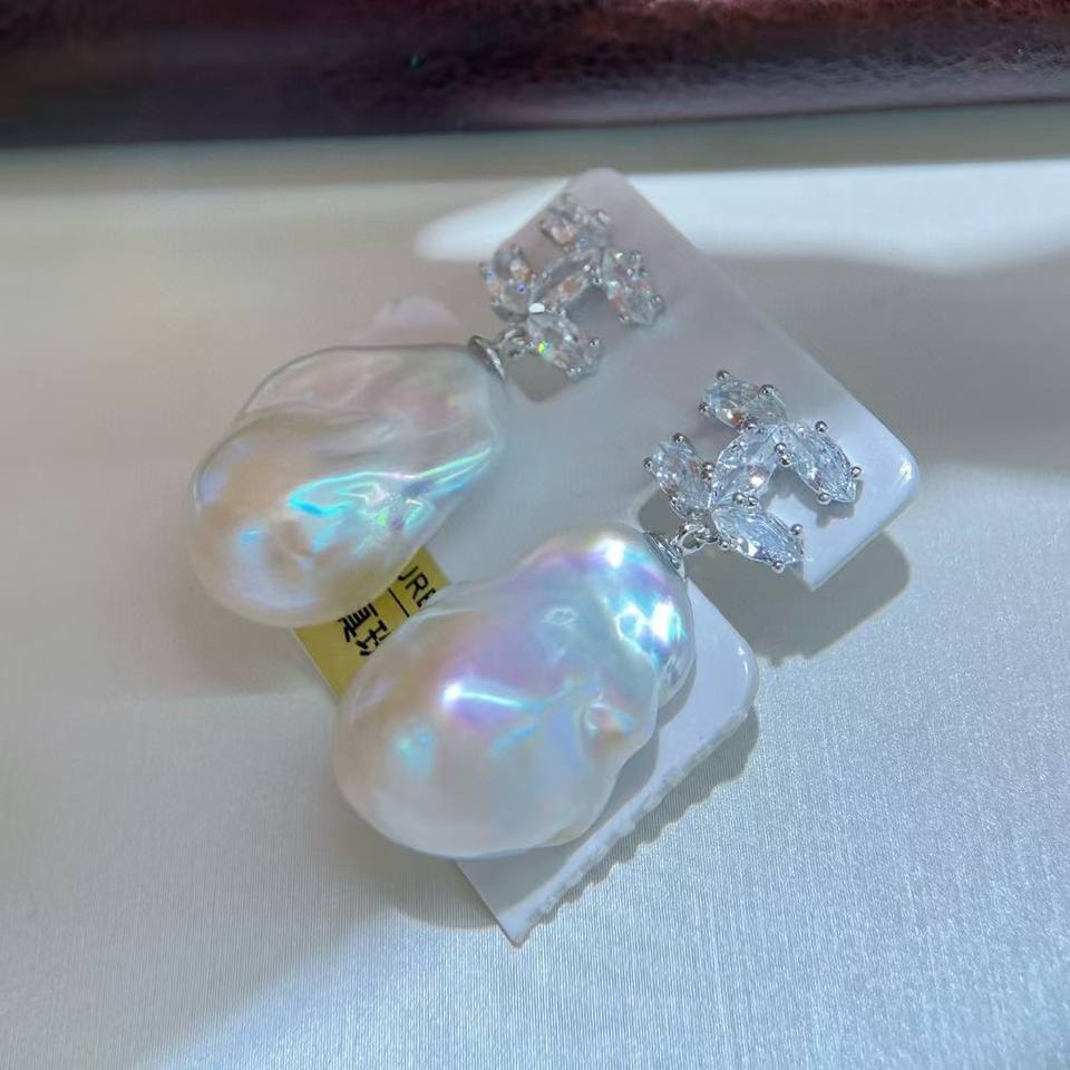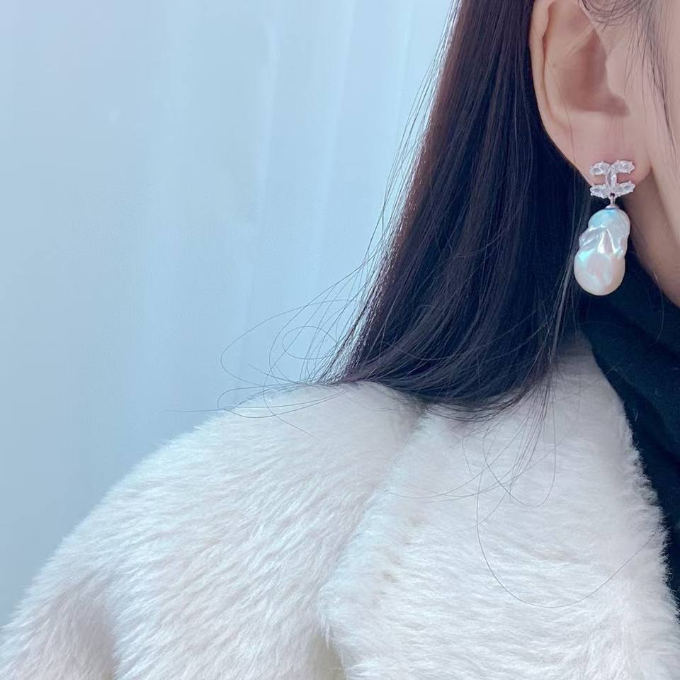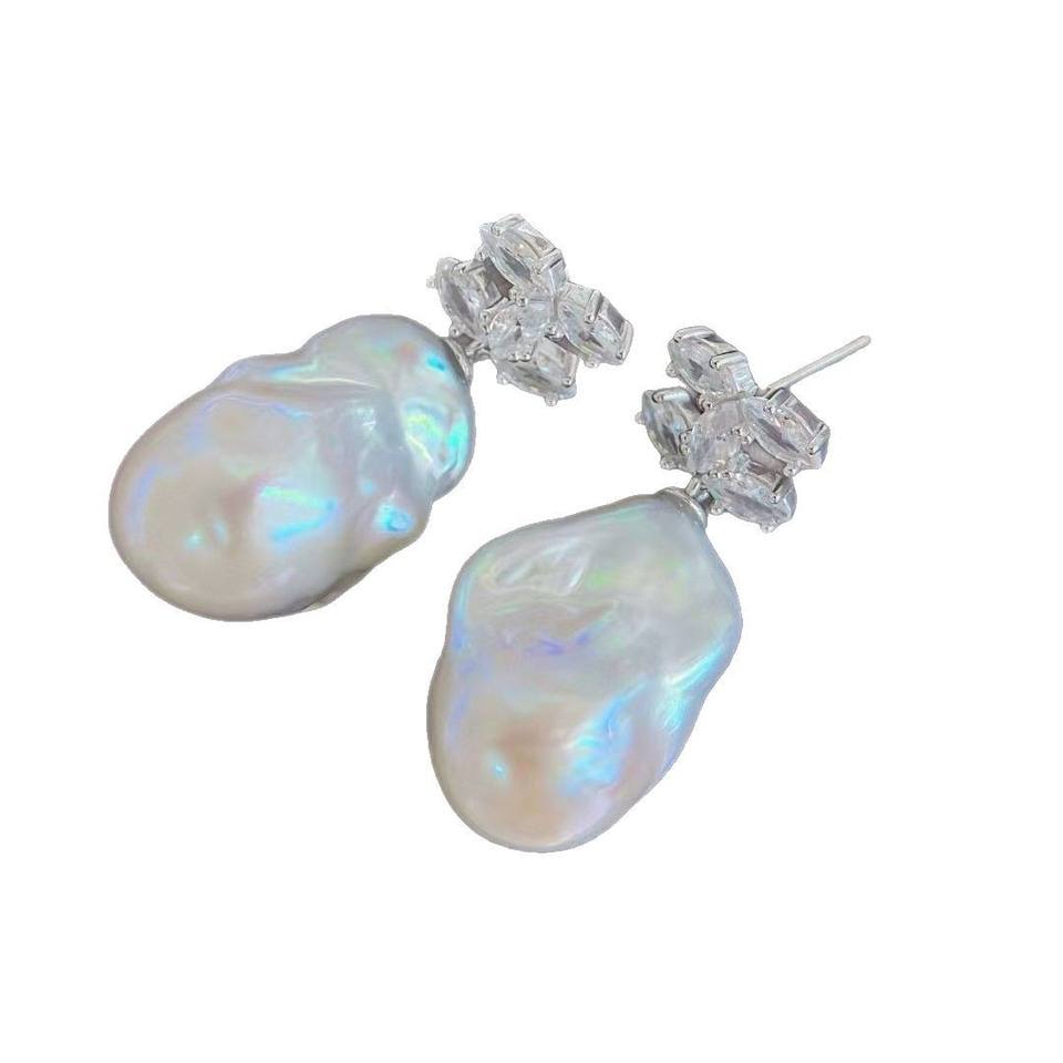 ต่างหูมุกน้ำจืดเงินแท้ S925 สไตล์บาโรก แฟชั่นฤดูร้อน ของขวัญสุดฮิต