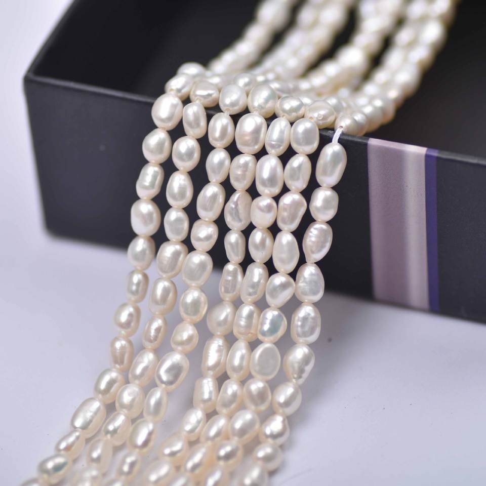 สร้อยคอมุกน้ำจืดธรรมชาติทรงบาร็อคสีขาว ขนาด 3-4 มม. แบบสองด้าน สำหรับงาน DIY เครื่องประดับกึ่งสำเร็จรูป ขายส่ง ยี่ห้อเวินฉี จากประเทศจีน