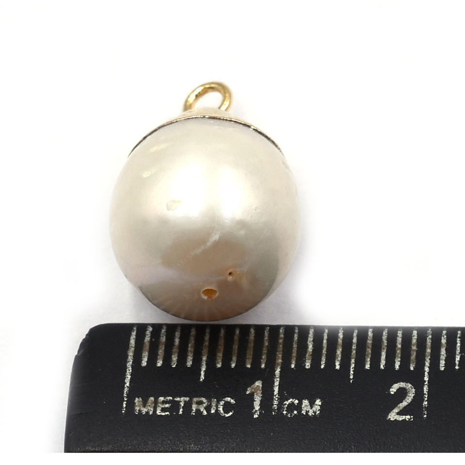 ชื่อสินค้า:จี้ไข่มุกแท้ บาร์ค ขนาด 18 ถึง 20 มม. พร้อมห่วง รูปทรงไม่สม่ำเสมอ ชุบทอง