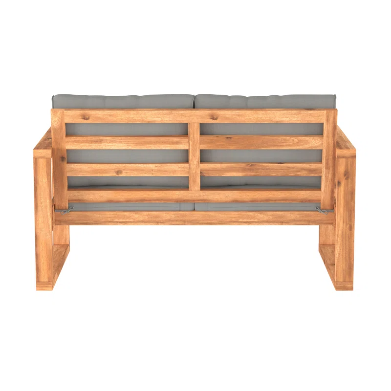 คำอธิบาย:โซฟาไม้สัก 2 ที่นั่ง สำหรับใช้งานภายนอก สีไม้ธรรมชาติ