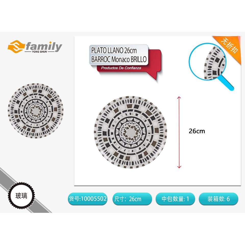Barroc MONACO จานแบนมันวาว26ซม. แผ่นโลหะเครื่องแก้วหรูหรา