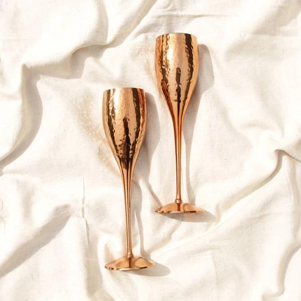 Barware แก้วแชมเปญทรงสูงสีโรสโกลด์หรูหราแก้วไวน์ชุบด้วยไฟฟ้าสำหรับร้านอาหารถ้วยเบียร์แก้วค็อกเทลโลหะสำหรับงานแต่งงาน